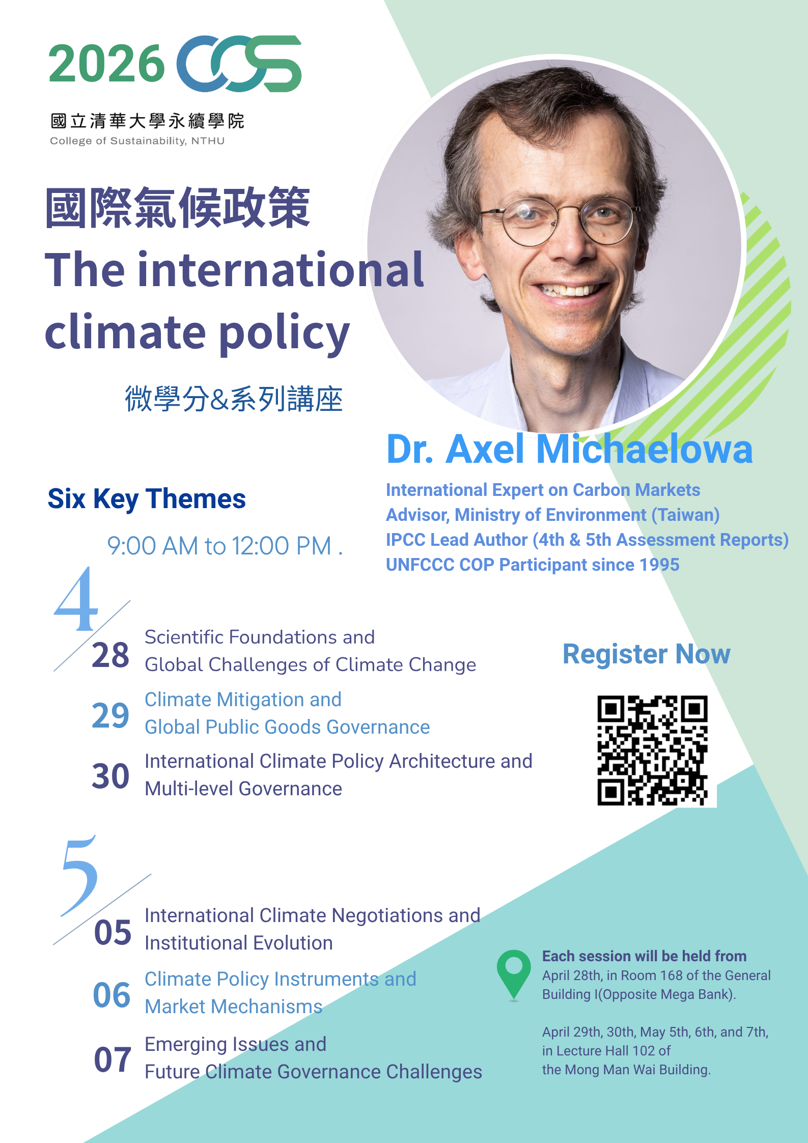 At a critical turning point in the global transition toward net-zero emissions, climate policy, carbon markets, and international governance mechanisms have become central to both government strategies and industrial development. This lecture series is delivered by internationally renowned carbon market expert and advisor to Taiwan’s Ministry of Environment, Axel Michaelowa, offering a systematic exploration of global climate governance frameworks and net-zero transition trends.